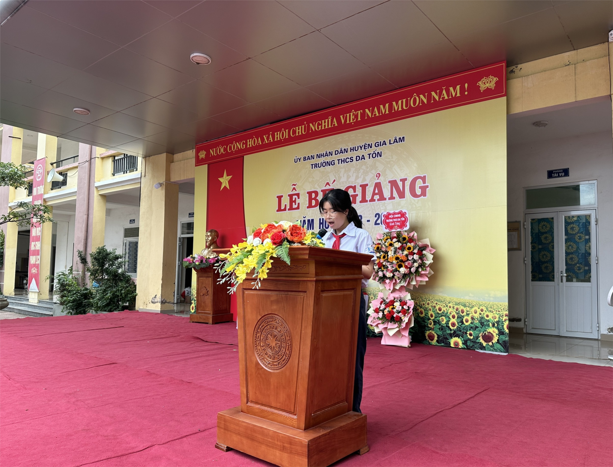 Con là Nguyễn Hà Chi, học sinh lớp 9E trường THCS Đa Tốn. Hôm nay con rất vui được đại diện cho 270 bạn học sinh lớp 9 trong trường, được nói lên cảm xúc của mình trong buổi tổng kết năm học.