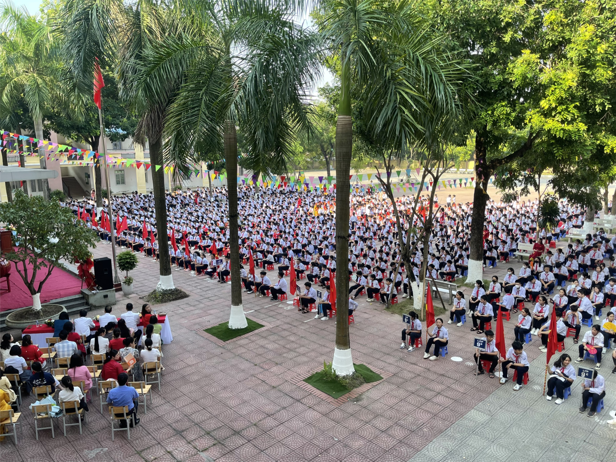 “Buổi mai hôm ấy, một buổi mai đầy sương thu và gió lạnh, mẹ tôi âu yếm nắm tay tôi dẫn đi trên con đường dài và hẹp.Con đường này tôi quên đi lại lắm lần, nhưng lần này tự nhiên thấy lạ. Cảnh vật chung quanh tôi đều thay đổi, vì chính lòng tôi đang có sự thay đổi lớp: Hôm nay tôi đi học” Đó là cảm nhận của một cậu bé trong ngày đầu tiên cắp sách tới trường để sau này trở thành nhà văn Thanh Tịnh.Trong ngày khai giảng hôm nay, chắc chắn các em cung có nhiều cảm xúc. Trong lễ khai giảng này, em Lê Thu Hà - học sinh lớp 9G thay mặt cho 1388 học sinh trong toàn trường lên phát biểu cảm tưởng và đọc quyết tâm thư trong năm học mới.