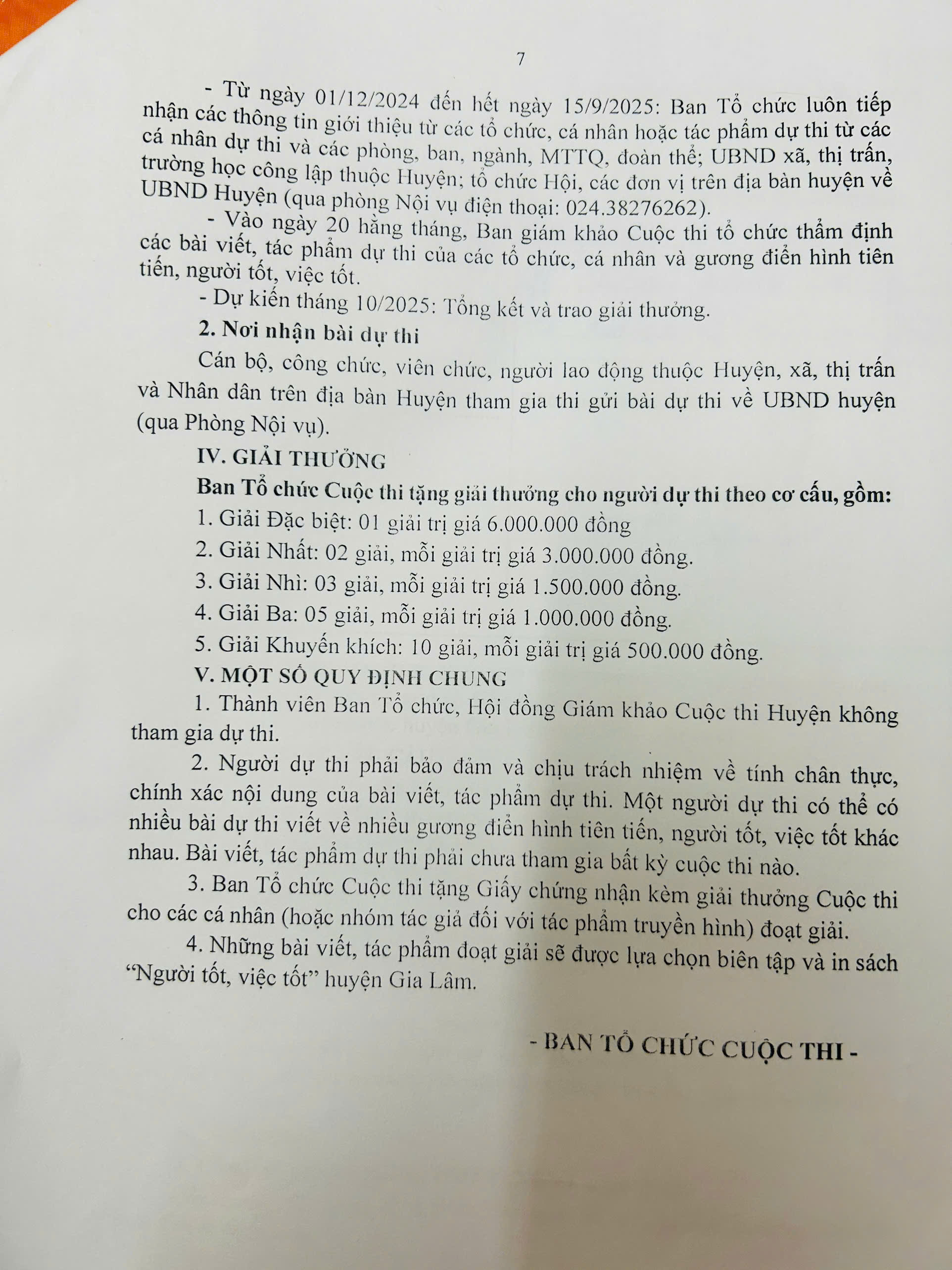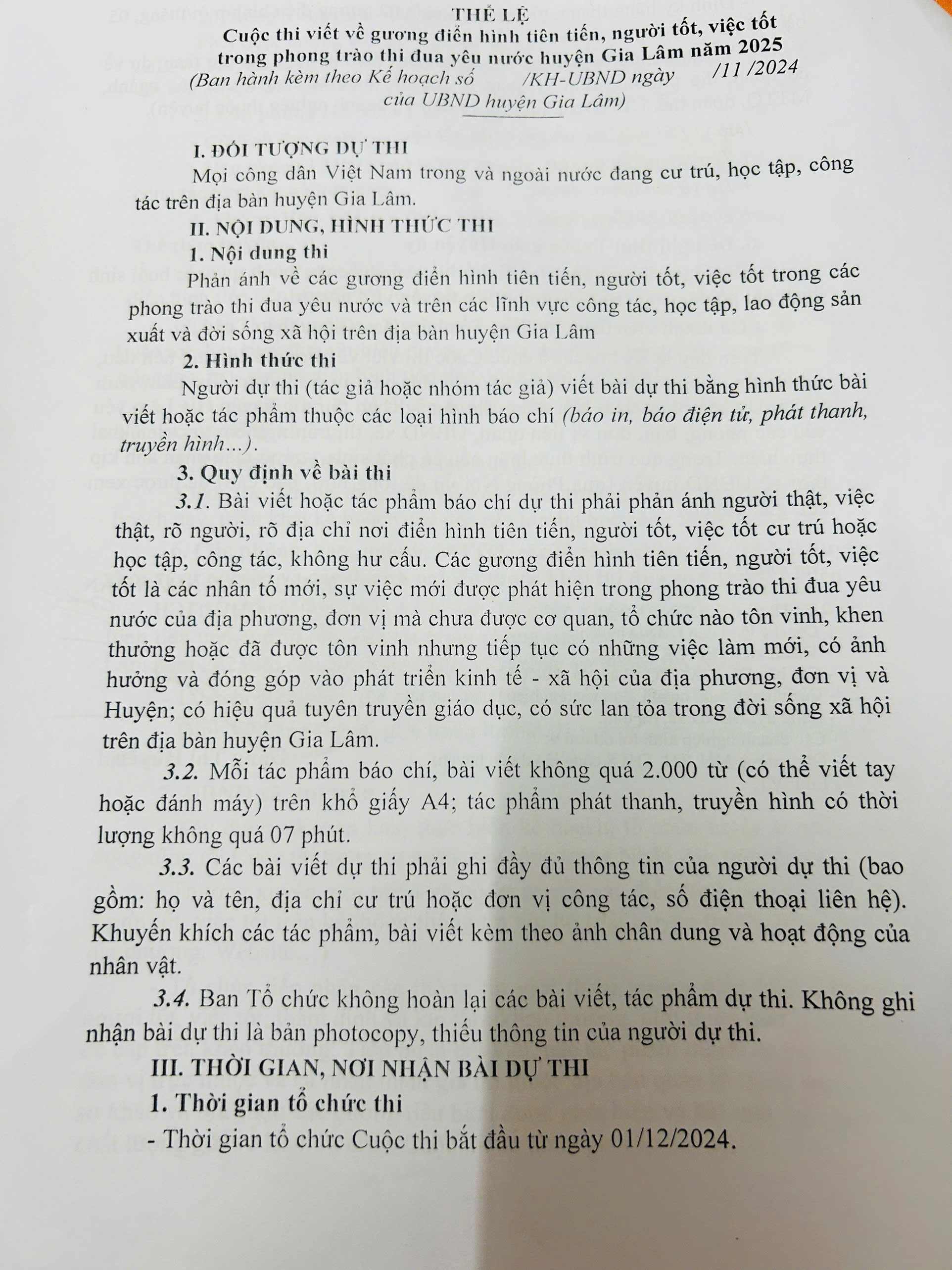 Căn cứ vào Kế hoạch số 295/KH - UBND của UBND huyện Gia Lâm ngày 25/11/2024 về Tổ chức cuộc thi viết về gương điển hình tiên tiến, người tốt, việc tốt trong phong trào thi đua yêu nước huyện Gia Lâm năm 2025.
